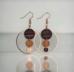 Material: Zwetschkenholz u. Ebenholz, Ohrhaken und Ring rosé, Astwerk-Logo-Plättchen rosé vergoldeter Edelstahl