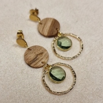 Material: Zwetschkenholz; Natursteine; vergoldeter Edelstahl Ohrstecker (Nickelfrei, Bleifrei, Cadmiumfrei)
