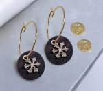 Die Ohrringe vereinen zeitlose Schönheit mit dem einzigartigen Charme der Jahreszeit. Die schwarzen Ebenholzscheiben schaffen einen stilvollen Kontrast zum goldenen Glanz.