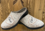Der Schaft besteht aus 4mm starken Alpaka Filz, nach dem Zuschneiden der Oberteile wird der Hausschuh vernäht und individuell bestickt. Weiters wird der Oberteil über den Leisten gezwickt und mit einer rutschfesten stabilen Abrollsohle fertig gestellt. Eine integrierte Längs- und Quergewölbestütze sorgt für ein angenehmes Tragegefühl. Der Schuh unterstützt vorwiegend Senk - Spreizfüße. Für lose Orthopädische Einlagen geeignet.
