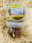 Zutaten: Frischkäse, Rapsöl, 20% Speck (Schweinefleisch, Meersalz, Gewürze, Dextrose, Zucker, Konservierungsstoff: Kaliumnitrat, Kaliumnitrit, Antioxidationsmittel: Natriumascorbat, Gewürzextrakte, Rauch), Kräuter, Knoblauch, Salz, Pfeffer